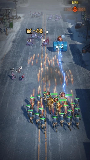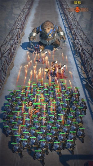 进入关卡后角色会自动攻击敌人,穿过屏障或者击碎油桶能获取增强效果。