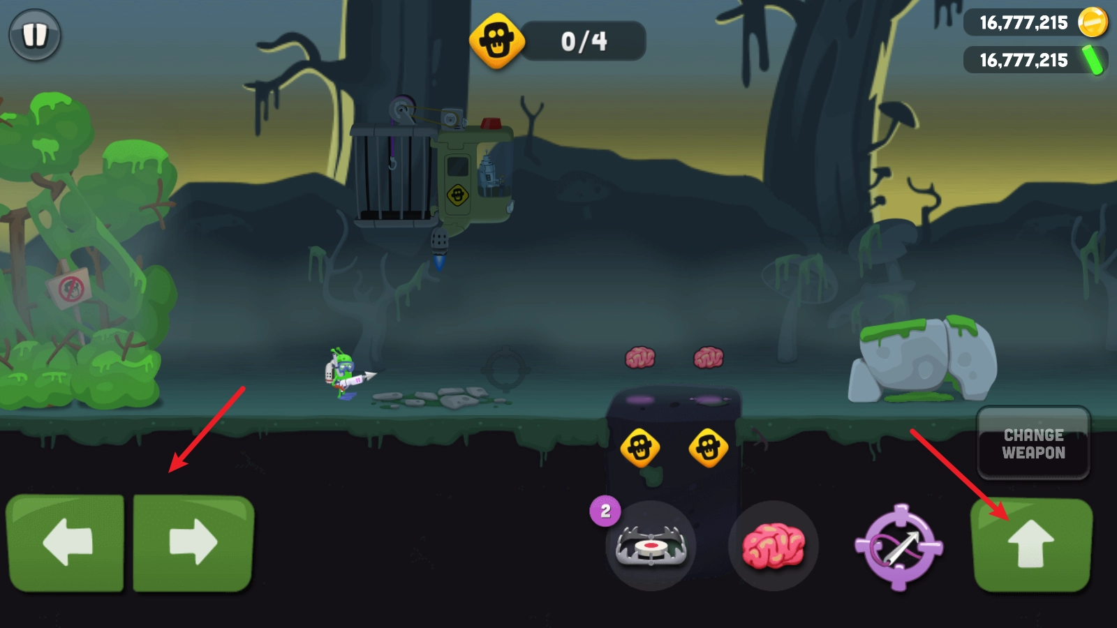 当靠近僵尸时,点击抓捕键就能把僵尸捕获到自己的飞船上。