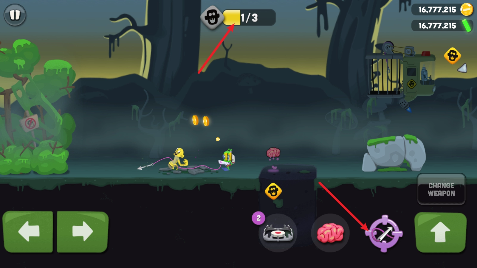 一定要和脑子保持足够距离,等僵尸现身就能实施抓捕了。
