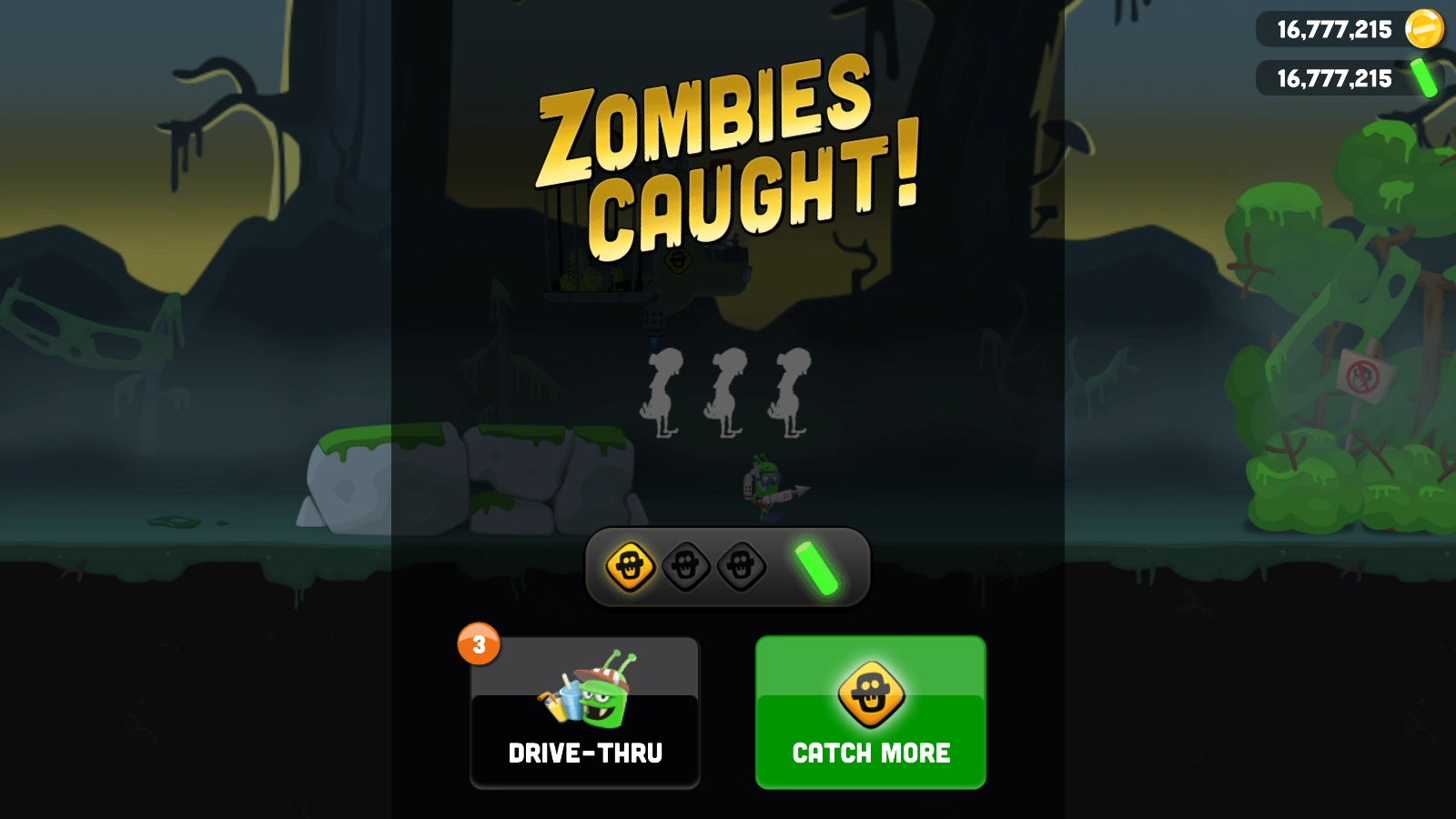 成功抓到所有僵尸后就能过关了。