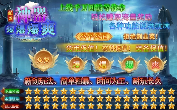 妖刀神器爆率拉满超爽,195神器超变版本,上线轻松玩转本服,免费畅玩无压力!轻松获取海量货币材料,零氪就能领取千万回馈任务奖励,各类功能白嫖就能满级!游戏内仅设一个首充礼包,无其他任何付费礼包,时间就是最强资本,只要肯投入时间,散人也能逆袭成大佬!不花一分钱就能轻松通关,来了保证让你免费玩得超爽!