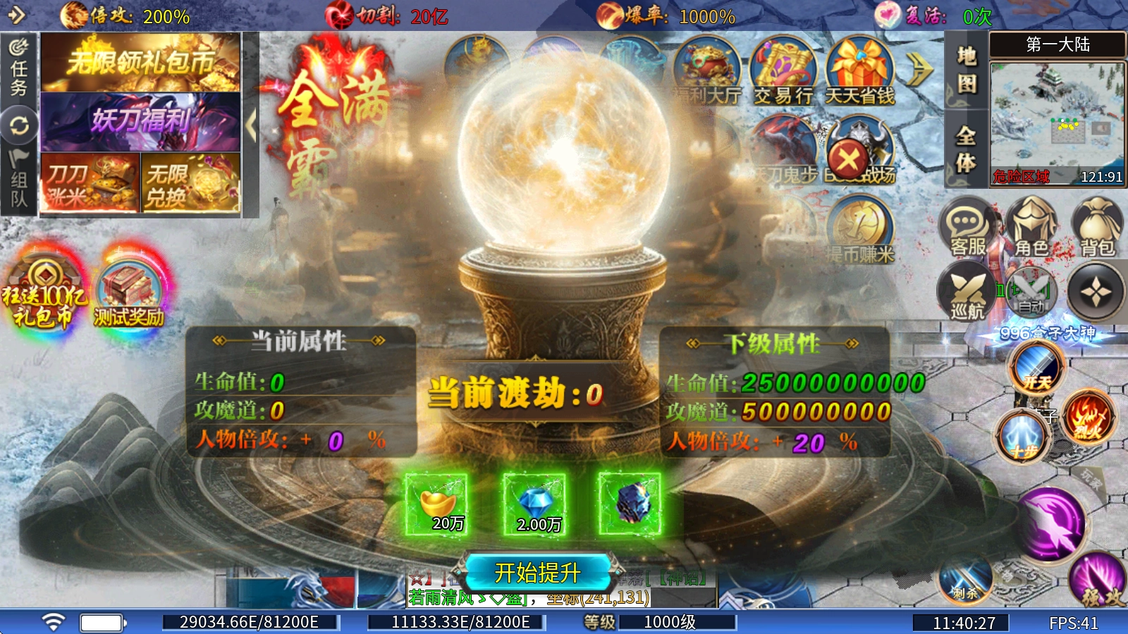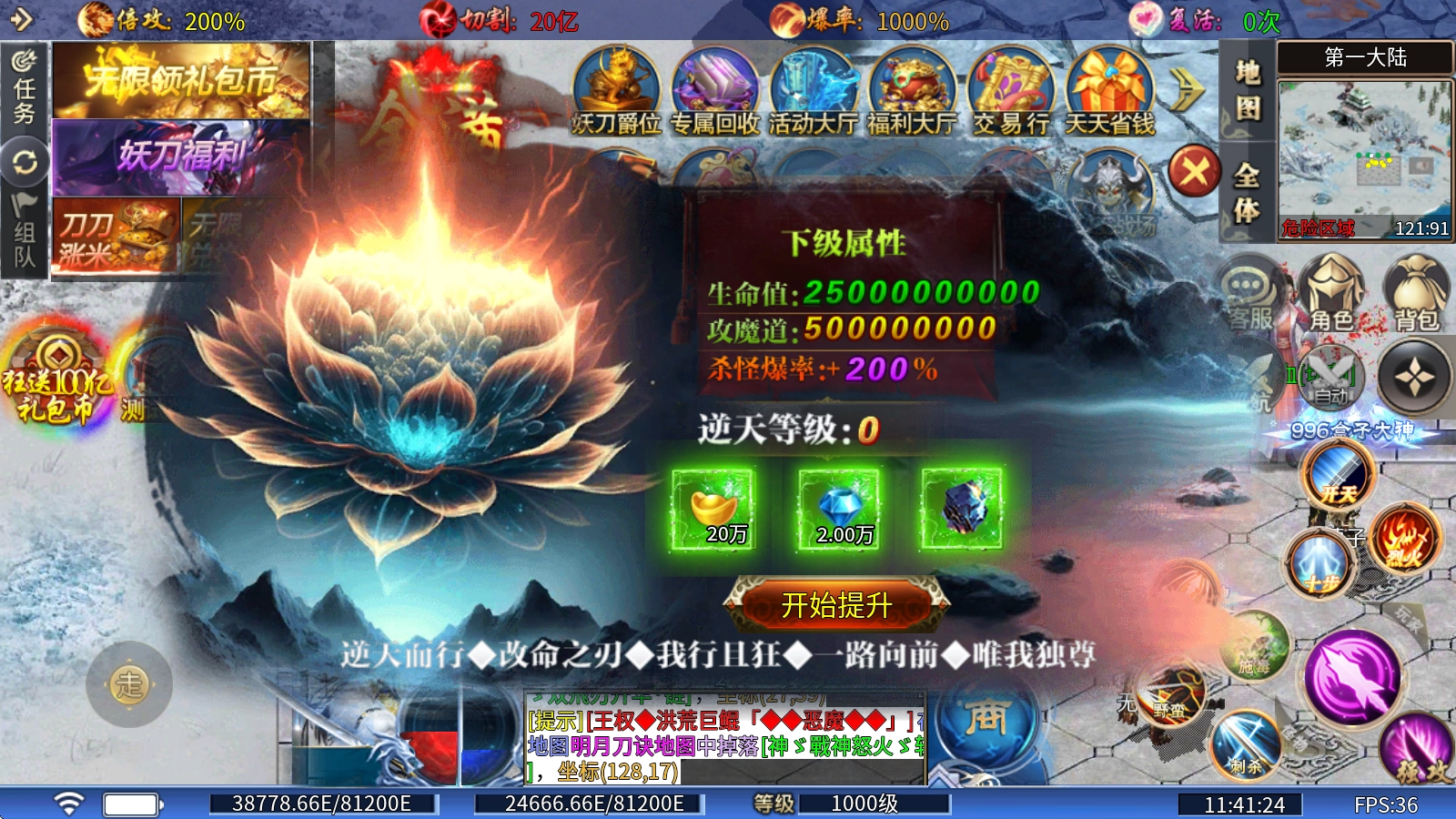 等级突破规则:当等级达到1000级后,消耗元宝、妖刀币与等级提升丹这三种道具,就能继续提升等级。