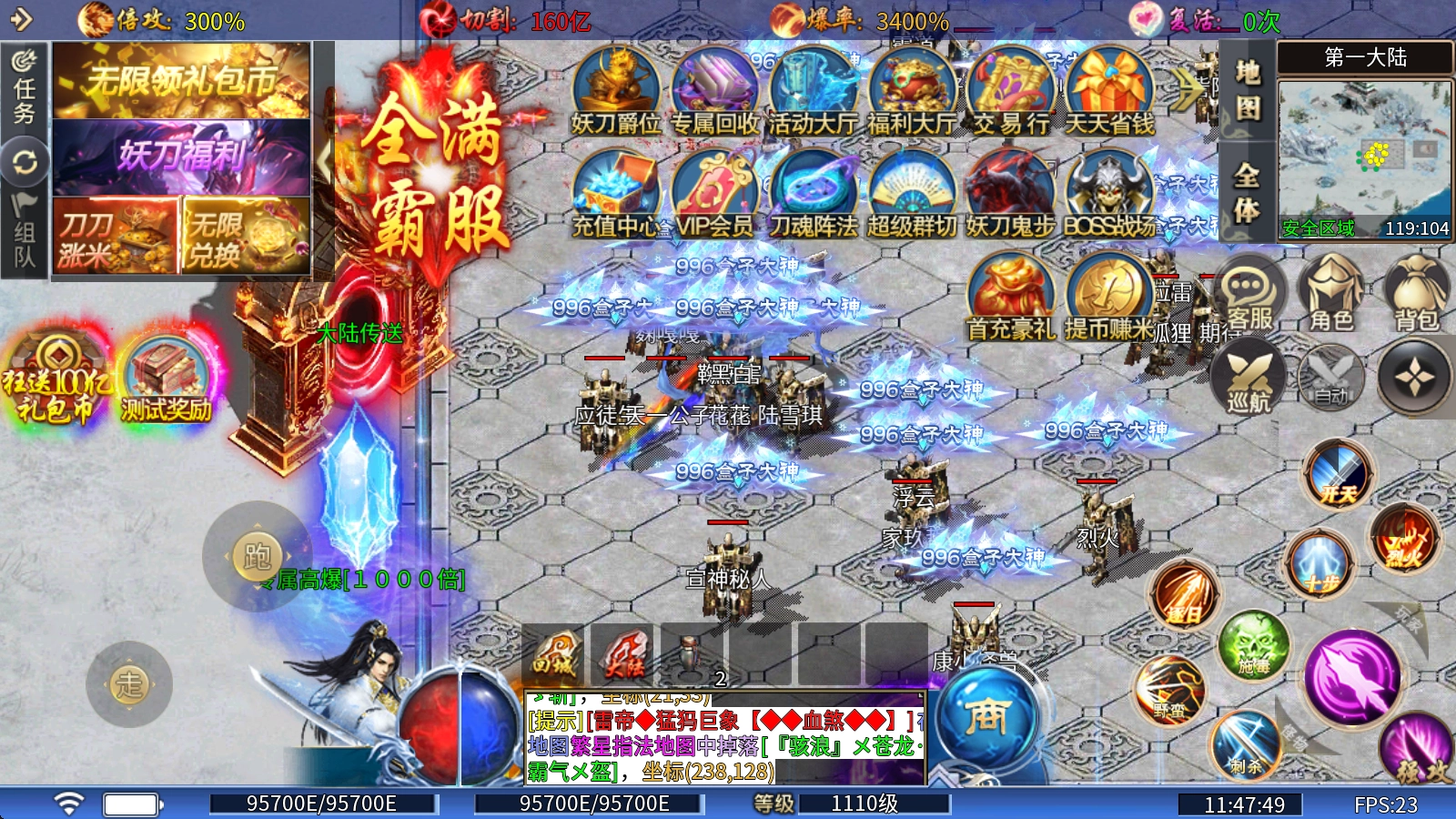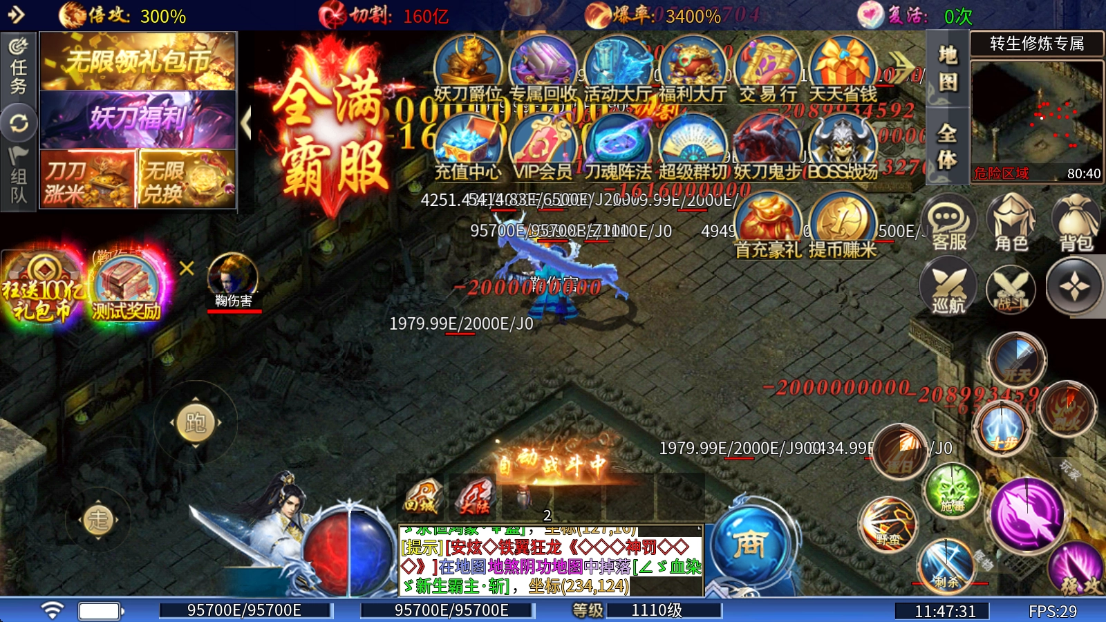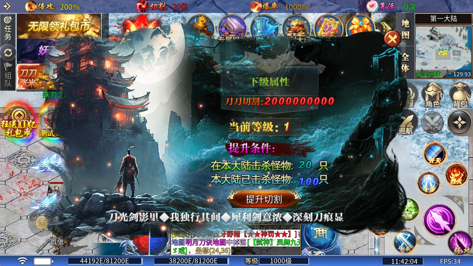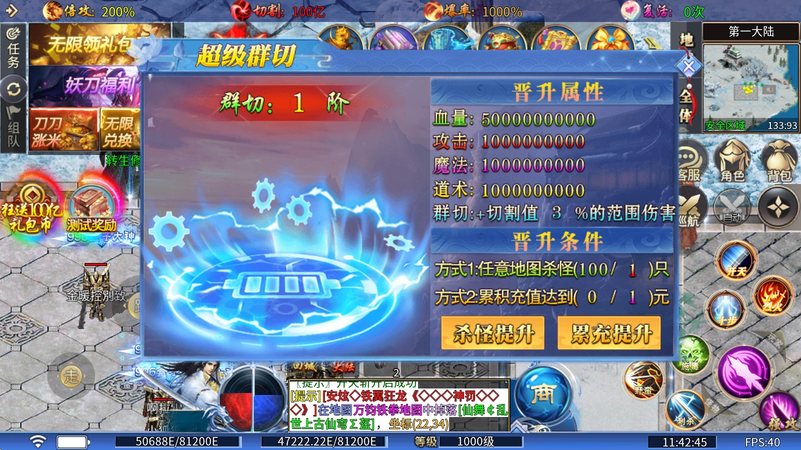 群体爆伤:通过杀怪或者累计充值的方式可以进行提升,将会获得切割值百分比的范围伤害。