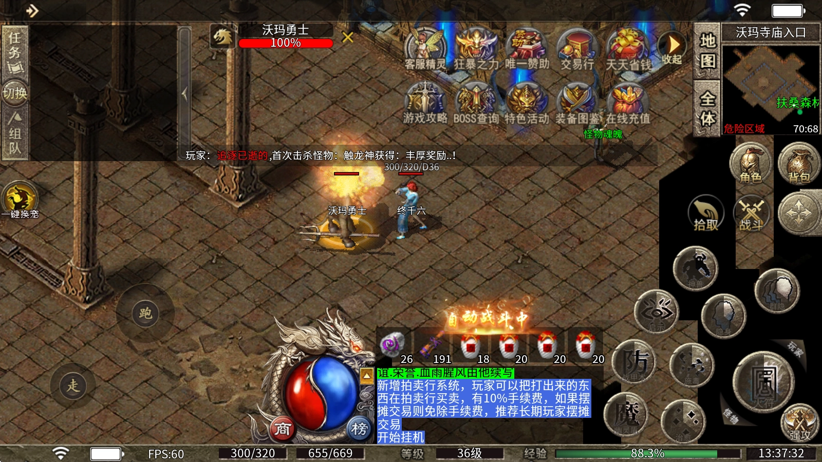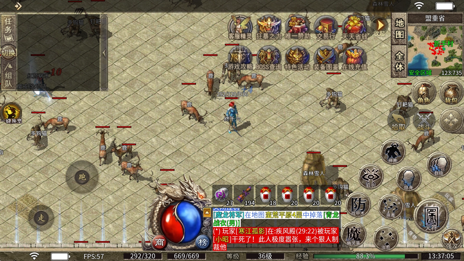 本服务器共有5个大陆,大陆等级越高,怪物难度越大,BOSS数量越多,掉落爆率也更优。