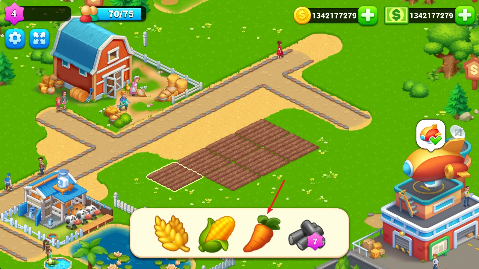 进入游戏后,先从农田种植环节着手,只要点击空着的土地,就能种下各类农作物。