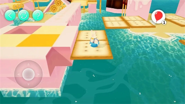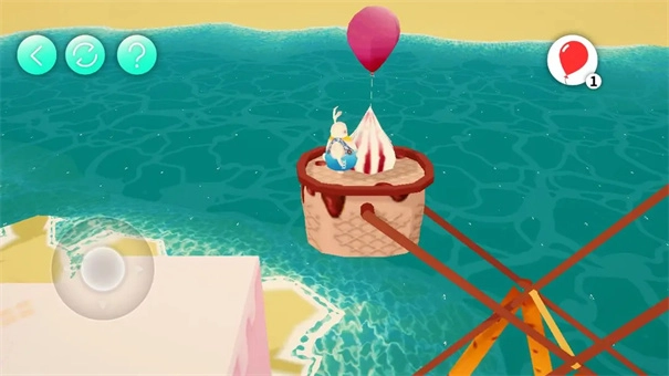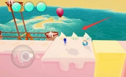 把气球分别放置在黄色、绿色、蓝色的冰激凌上面,前方就会浮起对应的方块,借助这些方块就能通过这里。