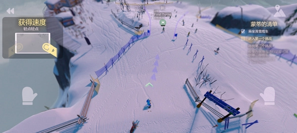 设置完成后,点击开始按钮,玩家就能借助点击左右两侧的手掌图标来操控滑雪板,使其加速前行。