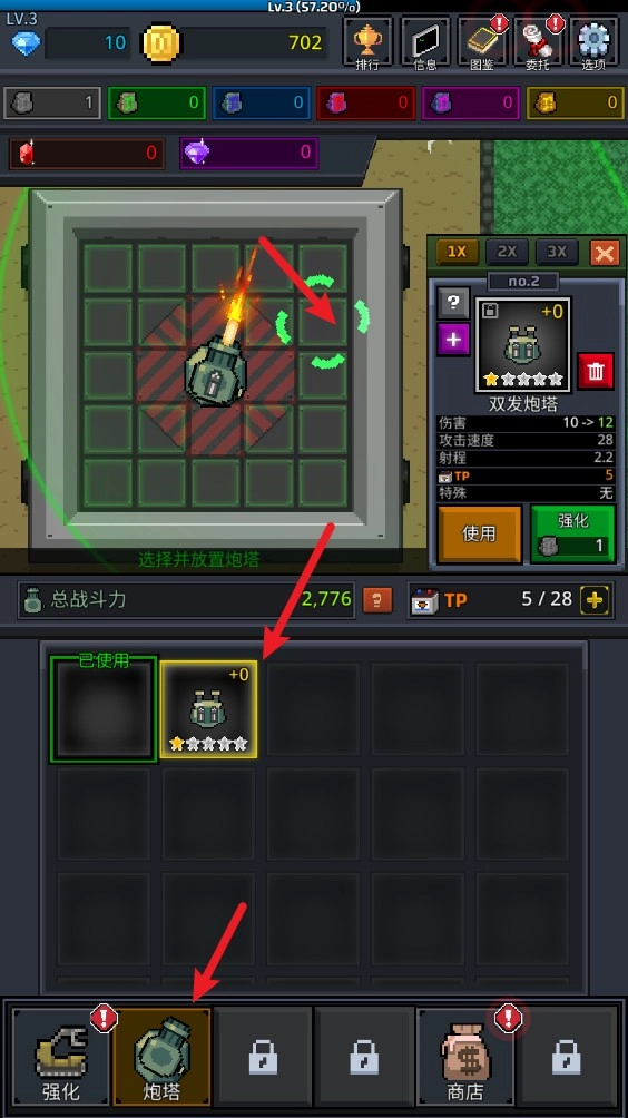 2、点击下方的炮塔选项,接着就可以在空着的位置摆放其他炮塔了。