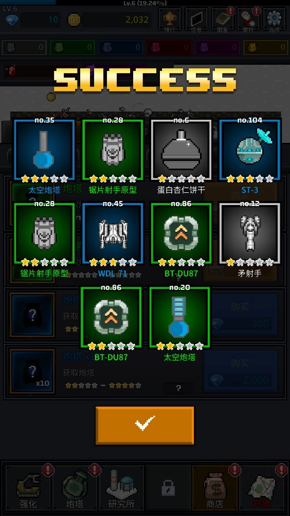 5、当等级提升到特定阶段后,商店功能便会解锁,玩家可在此抽取各式各样的炮塔。