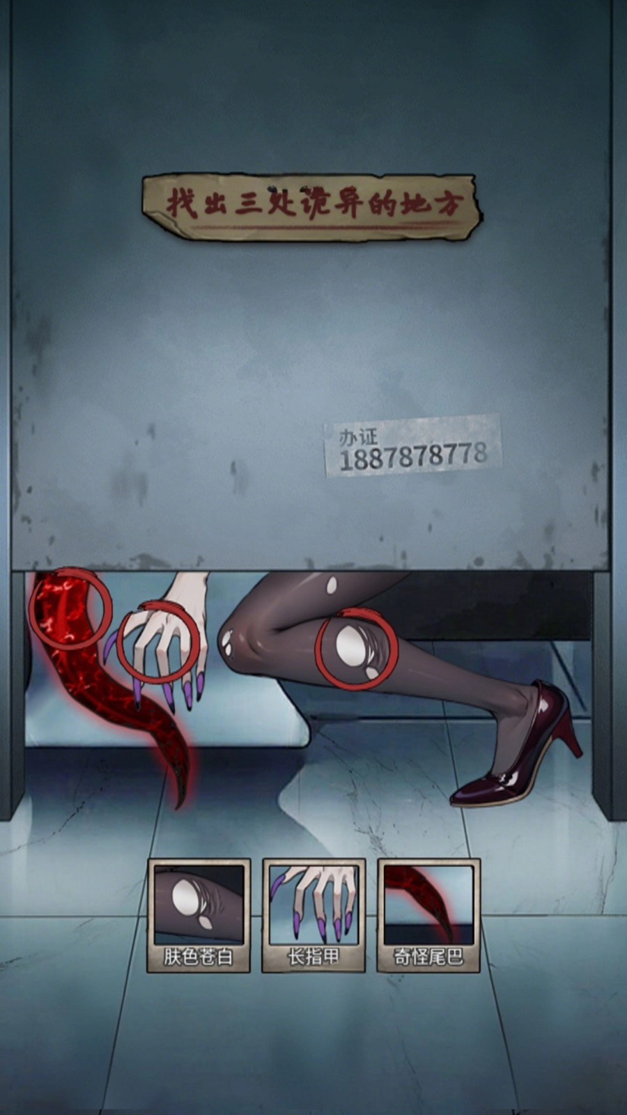 3、接到“找出三处诡异的地方”任务后,重点观察人物脚部及周边,像图中箭头指向的绿色液体痕迹这类明显不符合正常情况的细节。