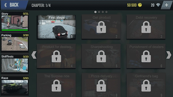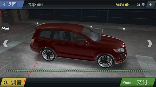 当靠近已停放的车辆时,屏幕右下角会出现一个扳手形状的图标,点击该图标即可进入机械工坊界面,在这里所有的改装选项都按照不同的功能模块进行了分区排列。