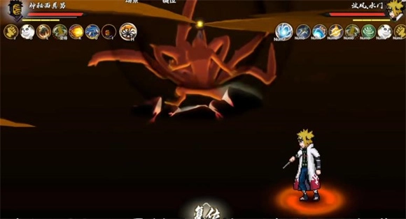 5、奥义·通灵术·九尾:召唤出狂暴状态的九尾,操控它释放出具有毁天灭地威力的尾兽玉。